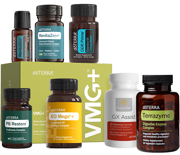 - VMG+® Whole-Food Nutrient Complex – Provides essential vitamins and minerals that fuel every system of the body, including detox organs. It includes 5 proprietary blends to support foundational wellness: Nutrition Blend, Superfood Blend, Cellular Support Blend and Bioavailability Blend.